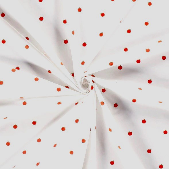 Fem om da´n gör kroppen glad! Men bara ett äpple (ca 1cm stort) om dagen är inte så dumt det heller. En härlig bomullspoplin (=tätvävd). Gör sig lika bra i babynestet, som i skjortan, som i kjolen, som i gardinen, som i örngottet, som i, ja, du förstår, den passar till lite utav varje.