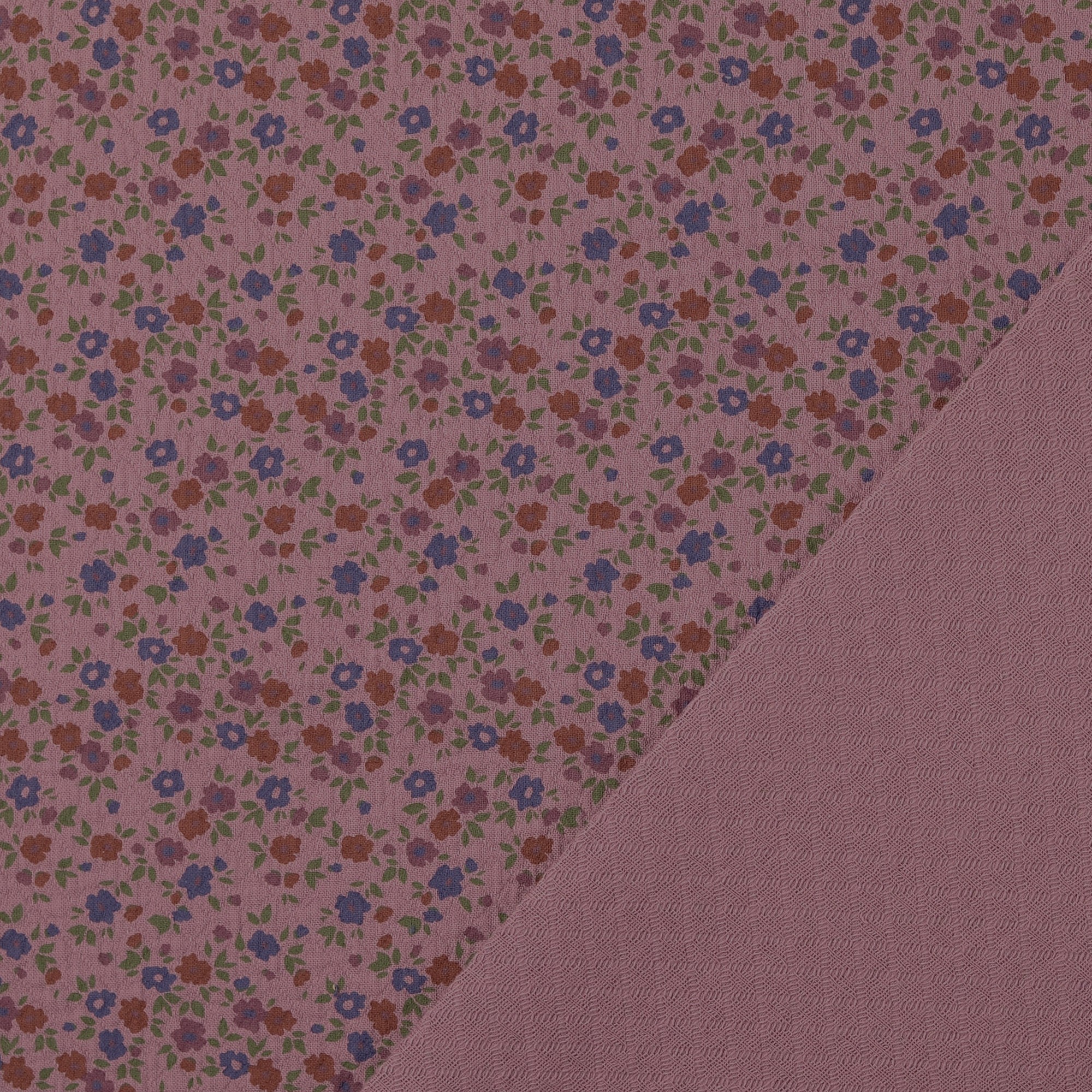 En alldeles ny kvalitet där stentvättad bomullsväv möter en klassisk jaquardväv. Resultatet blir en tvåsidig fantastiskt trevlig historia. Rätsidan är blommig (blommorna är ca 1cm) och ”avigan” är enfärgad med en vacker struktur. Går utmärkt att kombinera – perfekt matchning! Känns mjuk och skön, med lite mer kropp än i vanliga bomullstyger. Gör sig lika bra i necessären, som i skjortan, som i kjolen, som i gardinen, som i örngottet, som i, ja, du förstår, den passar till lite utav varje.