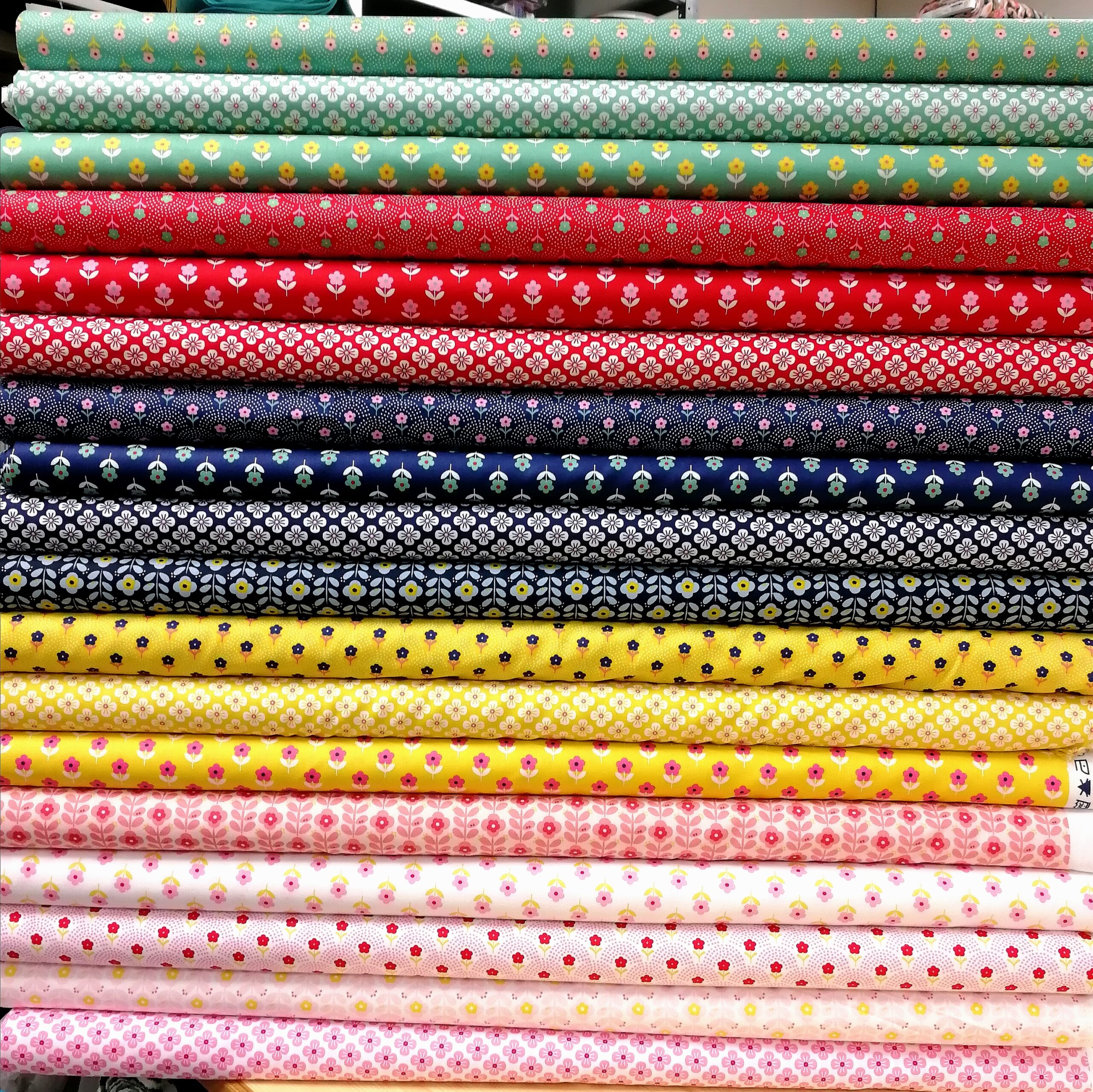Nu snackar vi färgsprakande sommarkänslor med retro touche. Och blommor! En härlig bomullspoplin (=tätvävd). Gör sig lika bra i babynestet, som i skjortan, som i kjolen, som i gardinen, som i örngottet, som i, ja, du förstår, den passar till lite utav varje.