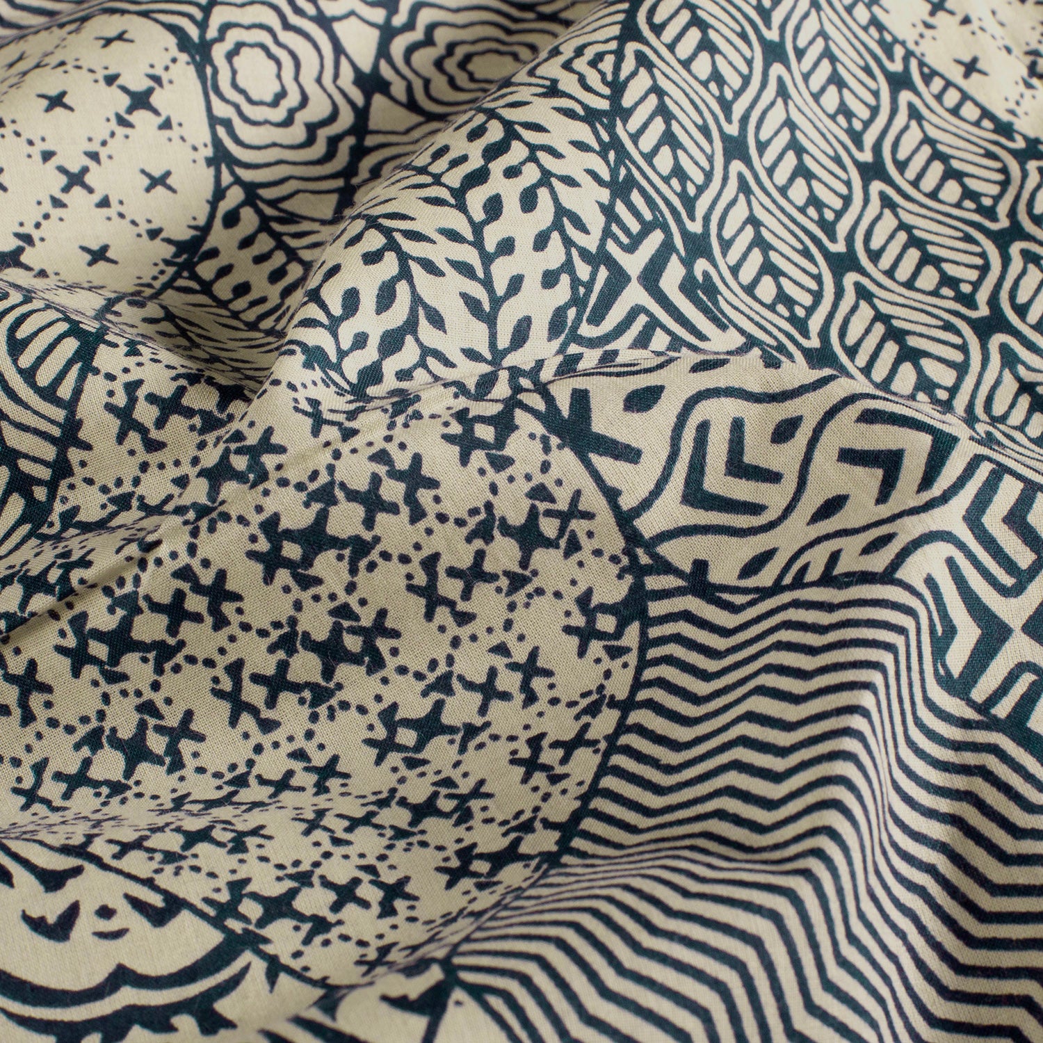 Wow, det är liksom så en känner vid första anblick. Abstrakt, traditionellt mönster i all sin prakt och enkelhet. Fjäderlätt bomullsväv man lätt blir beroende av. Passar till blusen, kjolen, klänningen, gardinen etc. Landa i nuet, ta en kopp te och glid fram genom ljumna sommarkvällar!