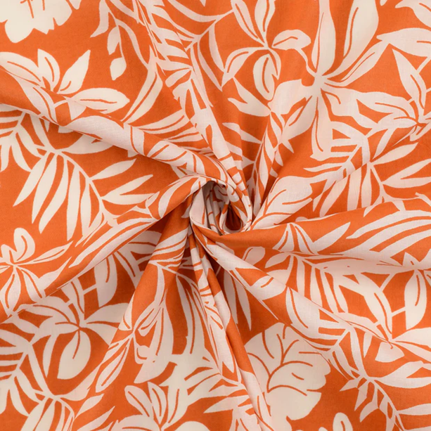 Vi snackar seriöst klassiskt Rockabilly-mönster eller den givna surfskjortan eller bara ett allmänt supersomrigt mönster. Längsta bladet är ca 9cm. Fjäderlätt bomullsväv man lätt blir beroende av. Passar till blusen, kjolen, klänningen, gardinen etc. Fram med long boarden och glid fram genom ljumna sommarkvällar!