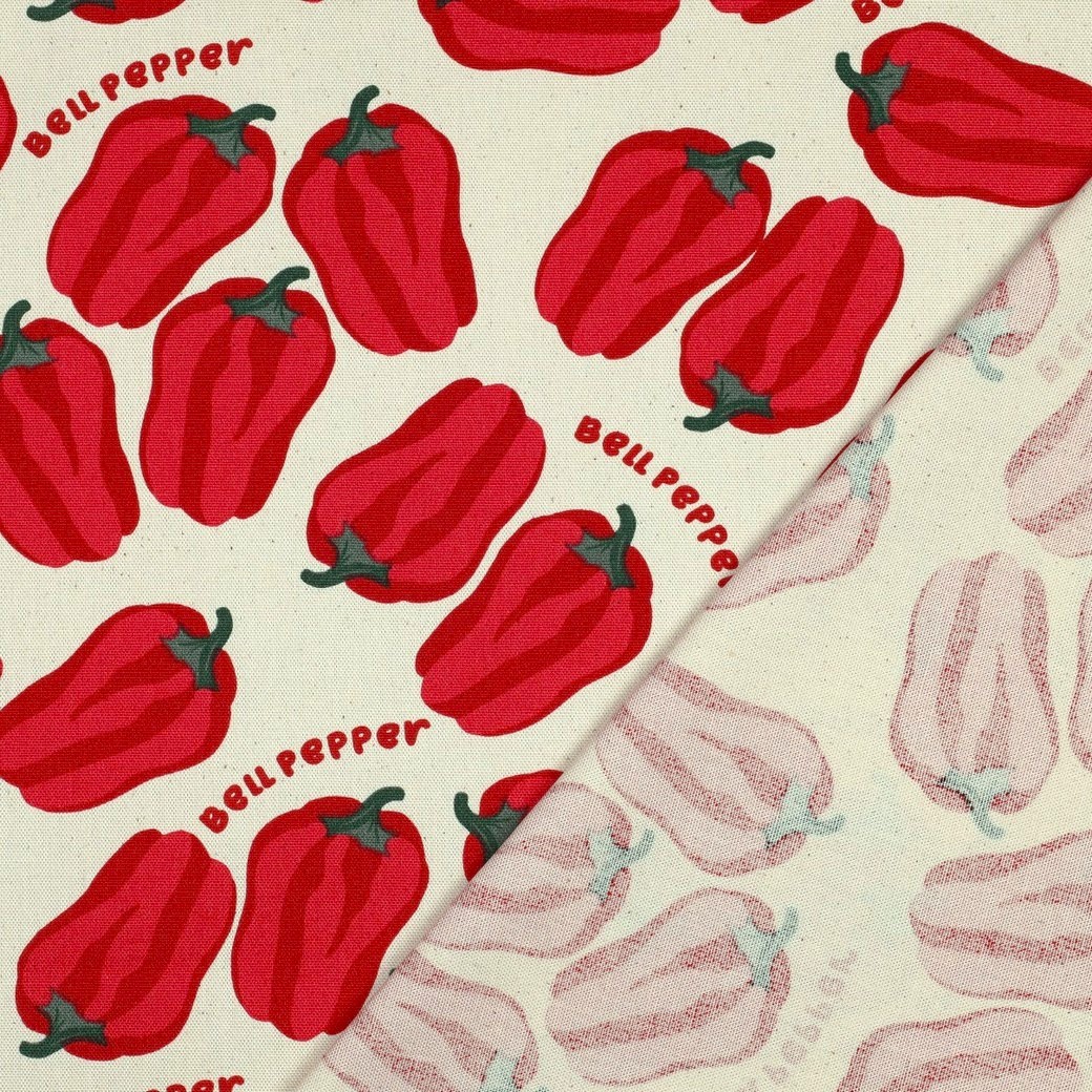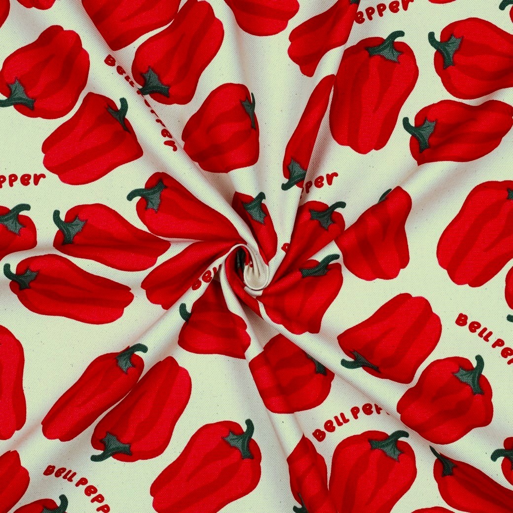 Visst har du alltid letat efter ett kraftigare tyg med paprikor på? Om så är fallet, så behöver du inte leta mer, här är det! Grönsakerna är runt 8cm. Gör en väska, ett förkläde eller ett par gardiner. Den här funkar till lite av varje.