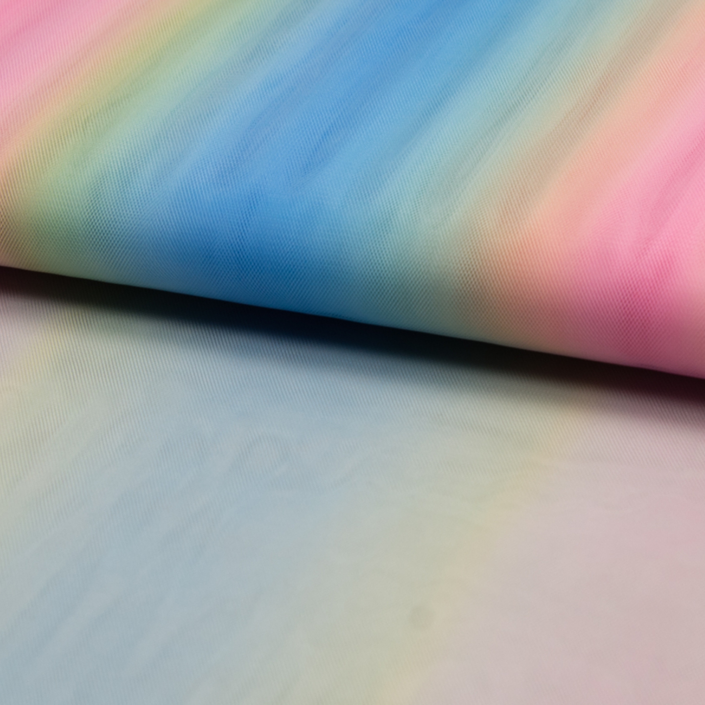 Ett sådant där tyg som får världen att stanna upp en liten stund. Du tänker ”Jag kan inte leva utan den!”. En mjukare tyll med en pastellig regnbåge. Lite lätt stretchigt, men inte tillräckligt för ett riktigt tight plagg. Tänk dig den där drömmiga klänningen, överdådiga sänghimlen eller den där puffiga tyllkjolen.