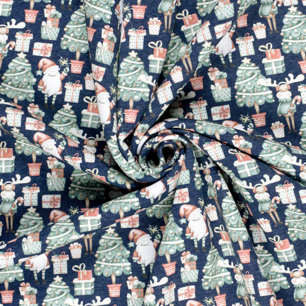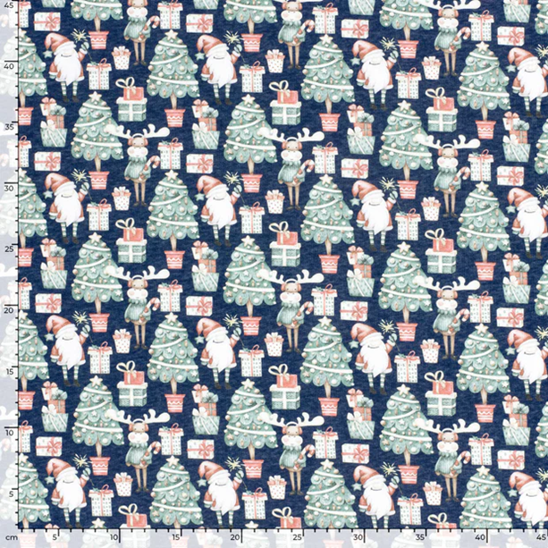 Seriöst hög mysfaktor på den här riktigt tjocka och fluffiga joggingen. Det är tomtebloss, julklappar, renar och tomtar på en mjuk och följsam jogging med flossad baksida. Gör sig allra bäst i form av sköna avslappnade plagg. Tänk dig att kunna gå runt i myskläder till jul, och komma undan med det!