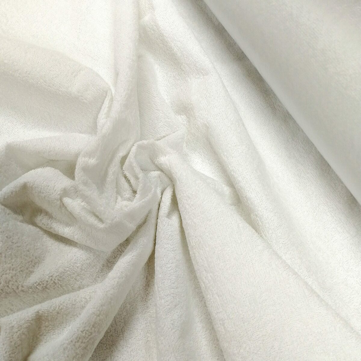 Denna plastade frotte är en s.k. skyddande textil med mjuk yta.
