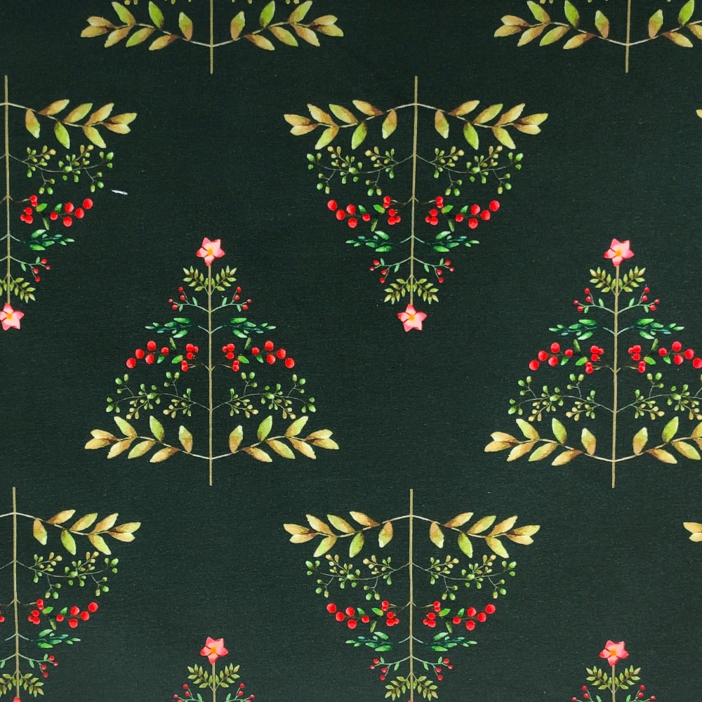 [vc_row][vc_column][vc_column_text woodmart_inline=”no” text_larger=”no”]Den mörkt gröna botten lyses upp av bären, bladen och den lilla blomstjärnan i toppen. Det är vackert och det är rofyllt. Granarna är ca 11cm höga. Digitaltryckt bomullstrikå av hög kvalitet. Passar bra till klädsömnad mm.[/vc_column_text][/vc_column][/vc_row]