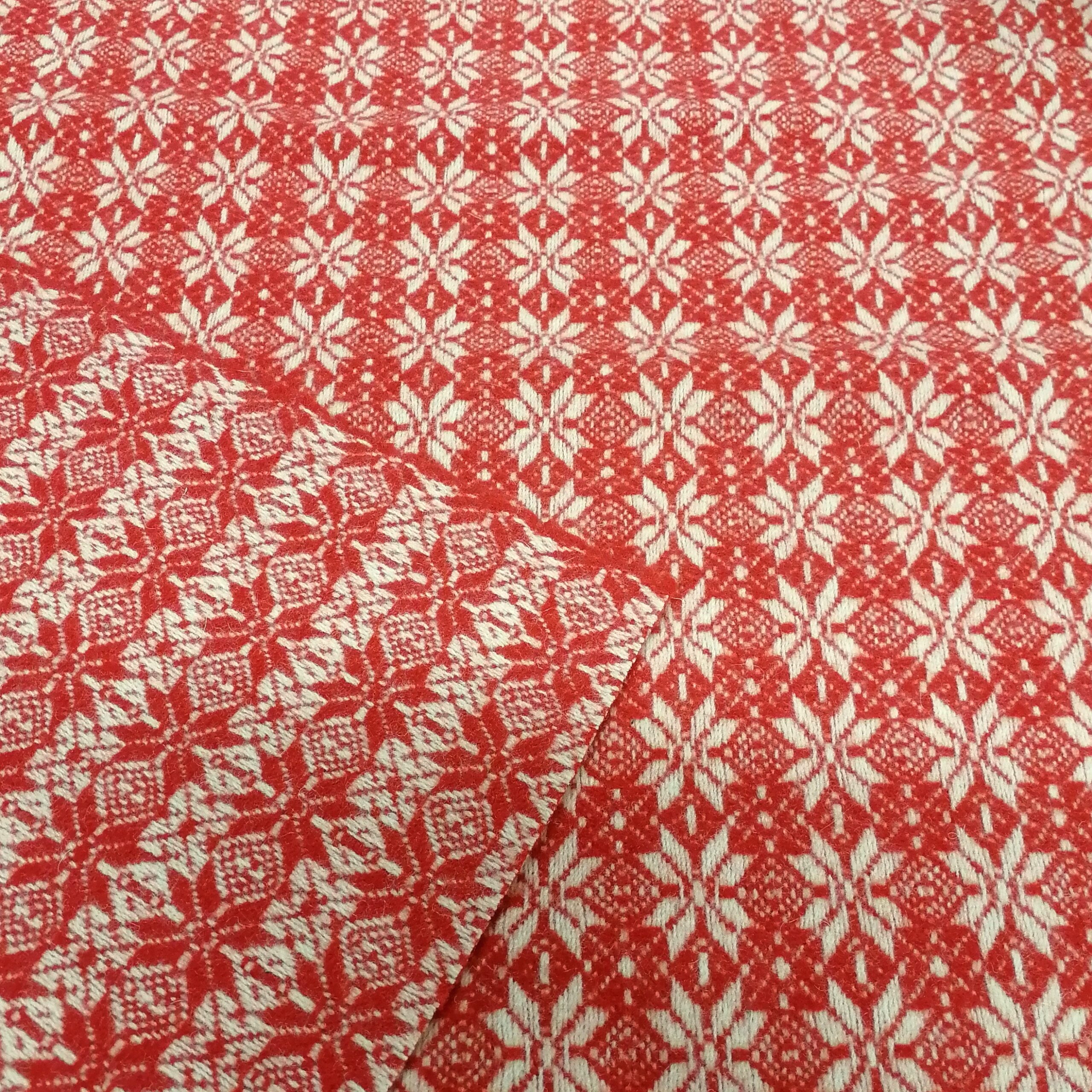 En sann klassiker perfekt till en kappa, en kofta, en pläd, ett yllebroderi eller diverse andra trevligheter. Jaquardvävt och valkat, lite tyngre och kraftigare ylletyg. Producerat i en gammal anrik fabrik i Portugal. Med valkat menas att det är krympt och ihopdraget, därför syns knappt den vävda strukturen. Tyget är inte stretchigt.