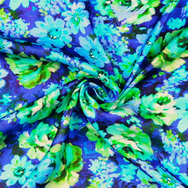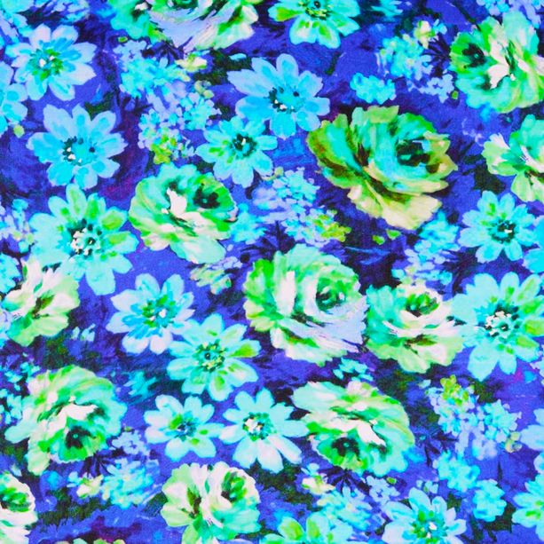 Viskossatin Färgrusblomma blå/grön fg 3